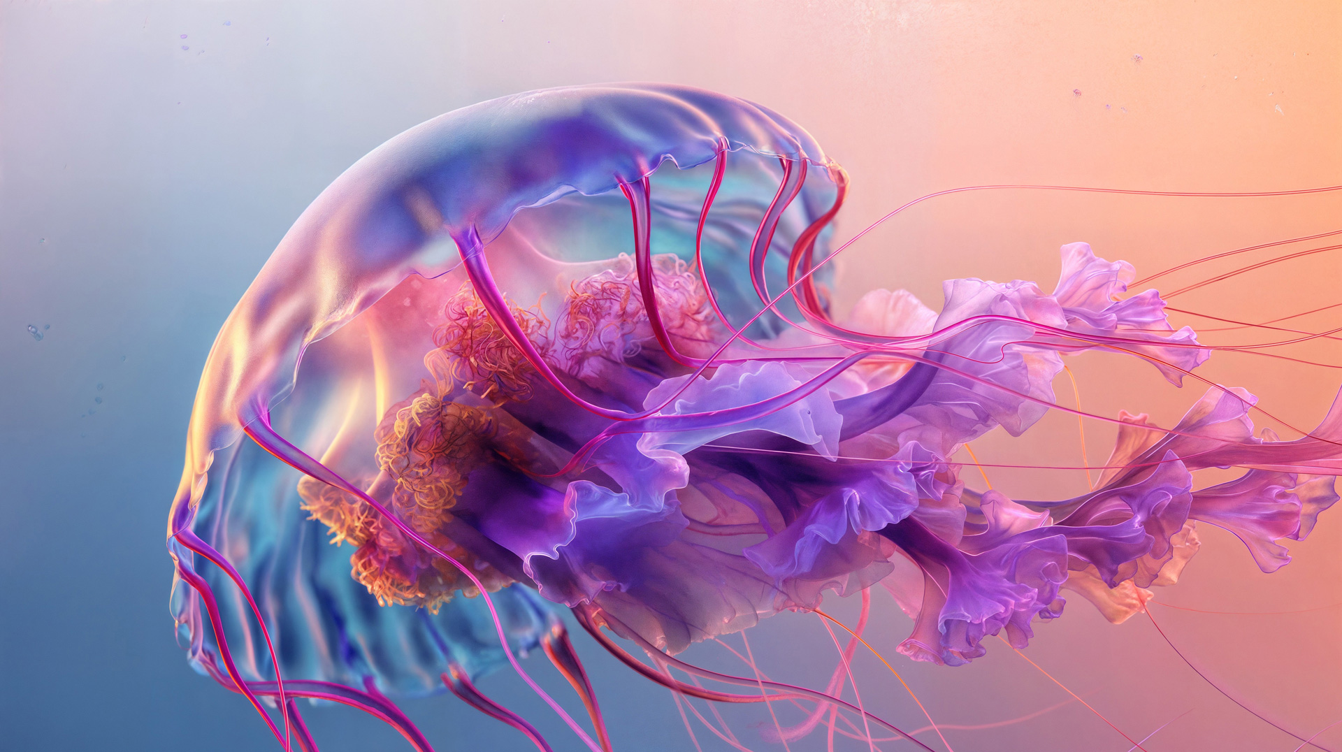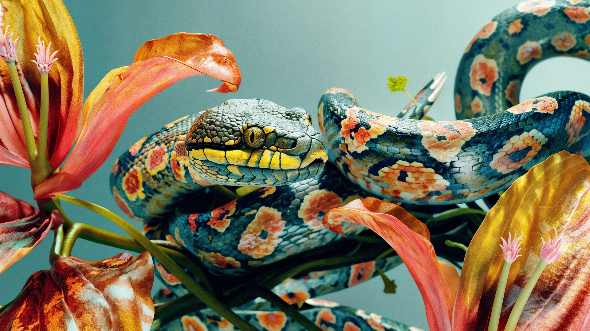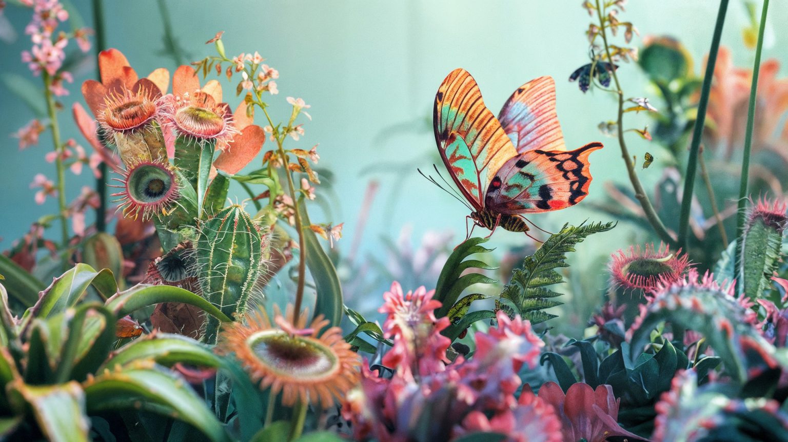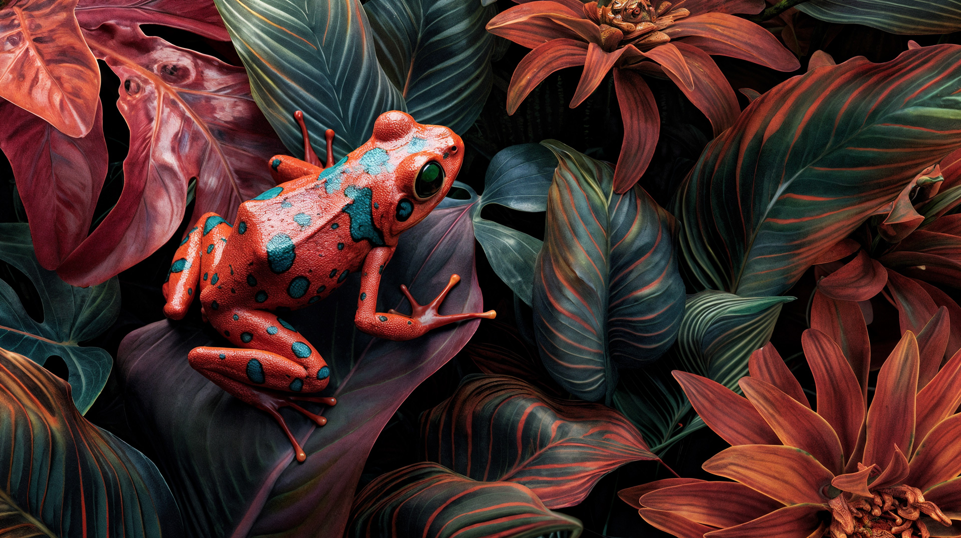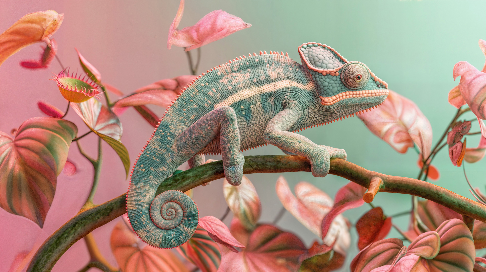 It reminds us where we come from — beneath every digital layer there is still body, skin, instinct, breath. The digital appears in the form of surreal ecosystems: mushroom textures, carnivorous plants, organic structures reimagined — as if nature itself were dreaming in pixels. ANIMALS is a manifesto to reconcile with the digital, to return a human pulse to technology, and to discover — even within AI — instinct, stillness and wonder.